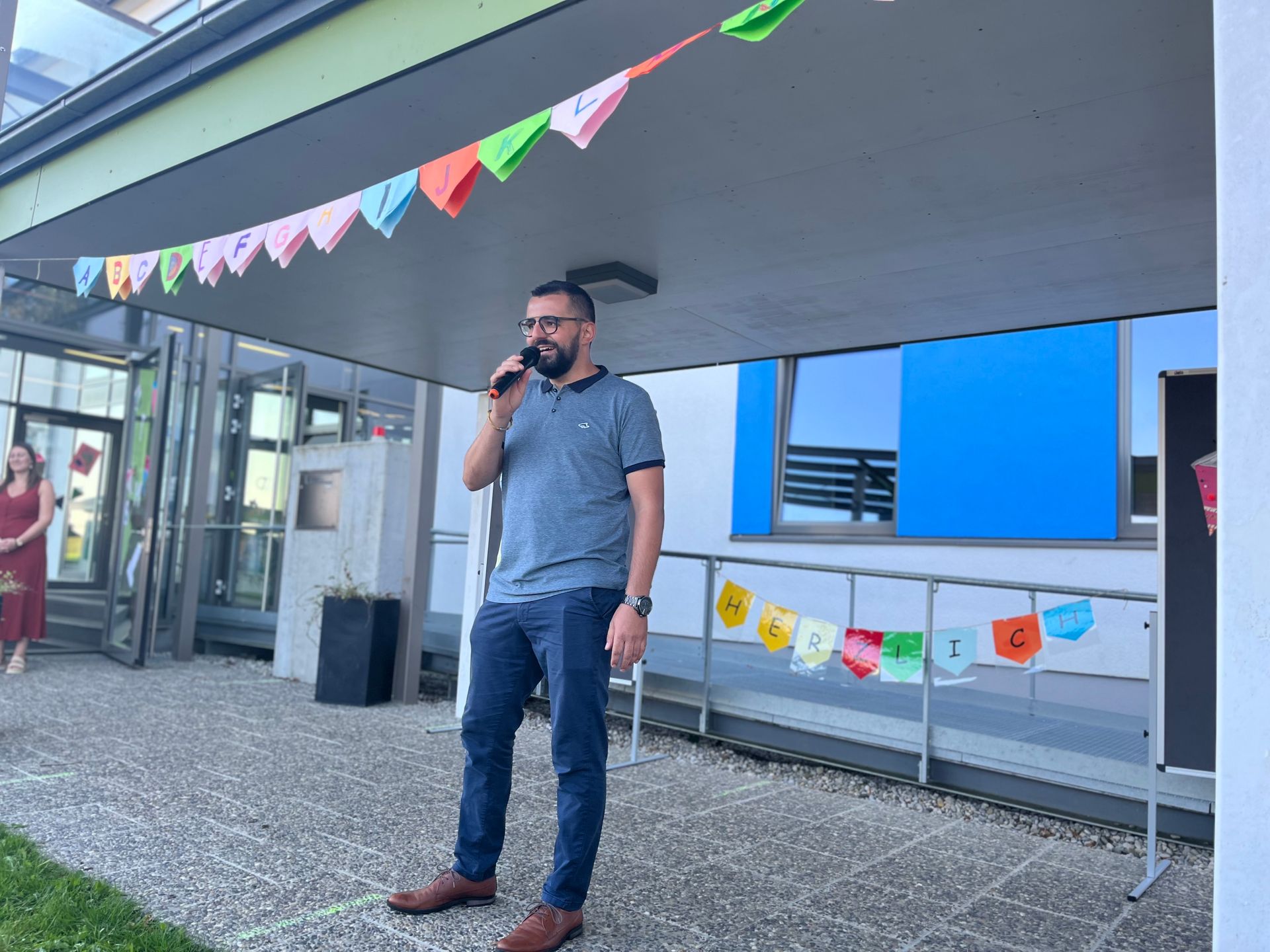 Bei sonnigem Wetter wurden die Kinder gemeinsam mit ihren Familien herzlich an unserer Schule empfangen. Nach einer kurzen Begrüßung durch unseren Schulleiter erwartete die neuen Schulkinder ein liebevoll gestaltetes Programm, das von unseren höheren Klassen vorbereitet und durchgeführt wurde. Mit einer bunten Mischung aus einstudierten Liedern und anderen Beiträgen hießen sie die Schulanfänger willkommen und zeigten, dass diese von der gesamten Schulgemeinschaft mit offenen Armen empfangen werden.